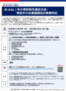 2026年1月より「中小受託取引適正化法(改正下請法)」と「受託中小企業振興法(改正下請中小企業振興法)」が施行されます。改正により規制が追加されることから、新たに適用対象となる方、取引の見直しが必要な方もいるのでなないでしょうか。
